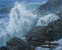 Chapel Porth is on the north coast of Cornwall between St. Agnes and Porthtowan. There is often a strong onshore wind blowing and with an ebbing tide the waves build up and crash onto the rocks.